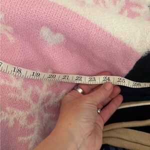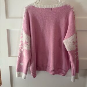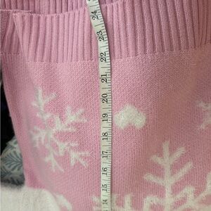 Excellent condition. Stay warm and stylish with this cozy pink sweater featuring a charming snowflake design. Perfect for chilly days. Size Large.