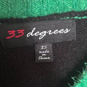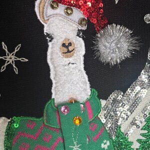 Add some sparkle (and humor) to your holiday season with this 33 Degrees Christmas sweater featuring a festive llama wearing a sequin Santa hat and sweater!