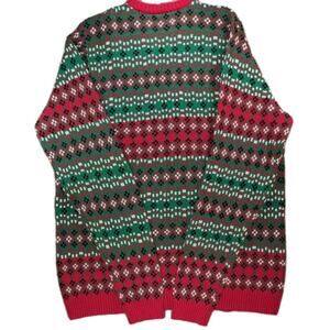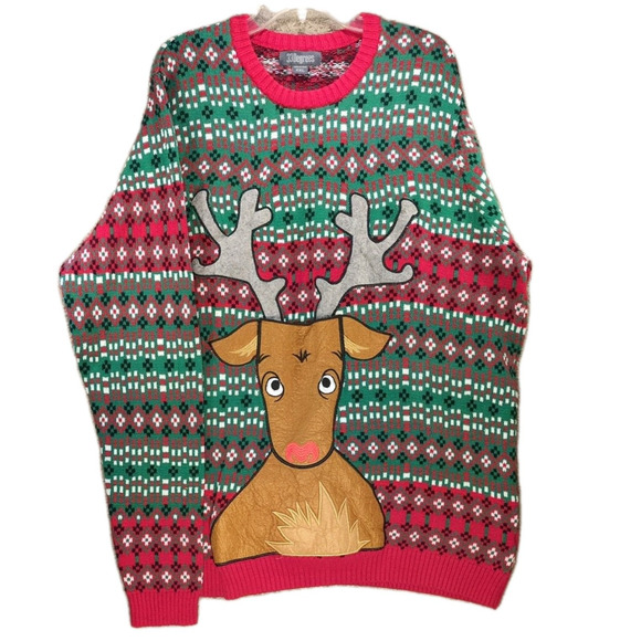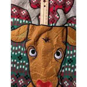 Men’s XXL Christmas sweater by 33 Degrees featuring a festive moose applique with built-in drink can pocket.