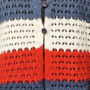 33 Degrees Patriotic Striped Crochet Long Bell Sleeve Sweater (M). Perfectly crocheted!