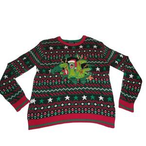 33 Degrees Santa T-Rex Dinosaur Ugly Christmas Sweater Adult Medium