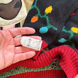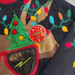 Men's "Ugly" Christmas Sweater, M, NWT, Black background with reindeer, trees, bells and sweater lights up. heavy weight