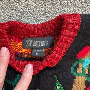 33 Degrees "Ugly" Christmas Sweater, Men's M, Black Reindeer, Light up, NWT