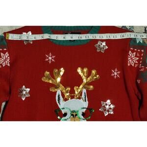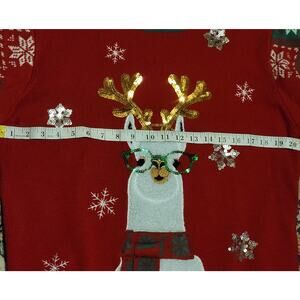 33 Degrees Ugly Christmas Sweater with Lama with Glasses Red and Green Size M. Snag on front by the right arm. This has been well cared for and washed as directed by the manufacturer.