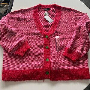 33 Degrees Women's Tree Button Graphic Cardigan Red Size XXL