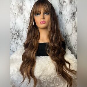 33 Inch Ombre Brown & Blonde wig with highlights with bangs