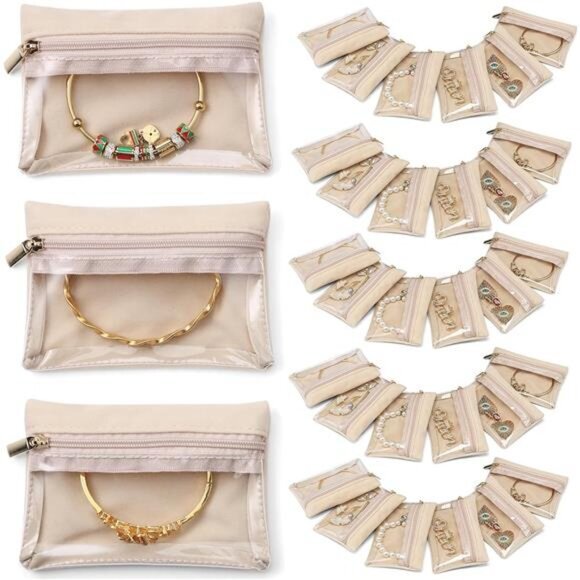 33 Pcs Travel Jewelry Bags Jewelry Pouch Bag, Clear Velvet Zipper Pocket Storage