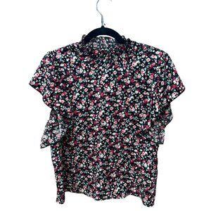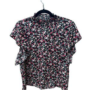 33. Shein Floral Mock Neck Top with Flutter Sleeves – Women’s Size Large