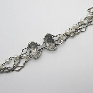 33" Vintage 3-Strand Mid-Century Judy Lee Silver/Faux Pearl Chain Necklace