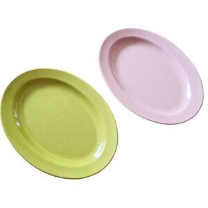 This Vintage Mallo-Ware 33 Pc Serving collection, in a charming Pink/Green color scheme, includes a variety of plates, bowls, platters, and more. Crafted from durable Melamine, this set adds a touch of nostalgia to your dining experience.