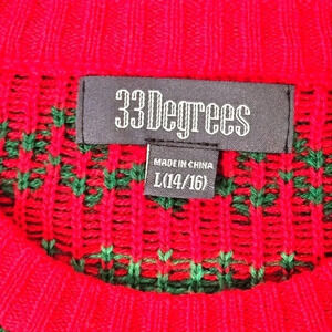 Like new 33 degrees Christmas sweater. Woman's large 14/16. With bells that work. Excellent condition