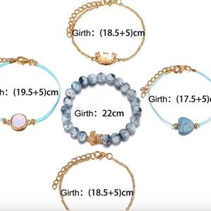 5 Piece layering bracelet, tropical, turtle, crab, heart, diamond, beach, vacation. Stacking Layering turtle