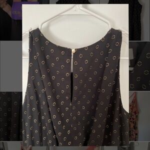 Target’s A New Day brand black sleeveless dress with metallic gold circles/dots. Elastic natural waist. Keyhole and button at back. Fully lined. Mini length.