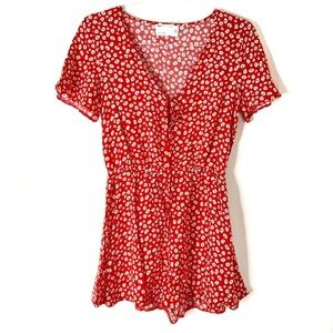 3/$30 ASOS Design | Red White Floral V-Neck Viscose Romper 4