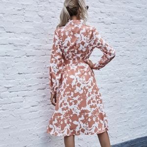 3/$30! Abstract Floral Peach & White Midi Dress with Belt