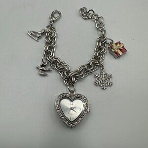 3/$30 Accutime Charm Bracelet Watch Silver Tone Winter Holiday Charms