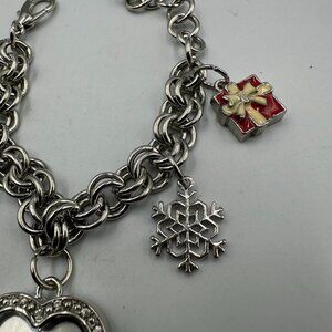 Accutime Charm Bracelet Watch Silver Tone Winter Holiday Charms New Battery