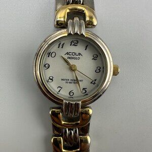 Acqua Watch Women Silver Gold Two Tone White Dial Indiglo New Battery 7 Inch