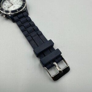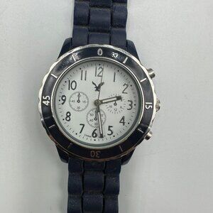 American Eagle Watch Men Silver Tone Blue Faux Chronograph Silicone Band Working