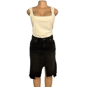 Armani Exchange Black Denim Skirt Front Slit in size 6.