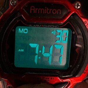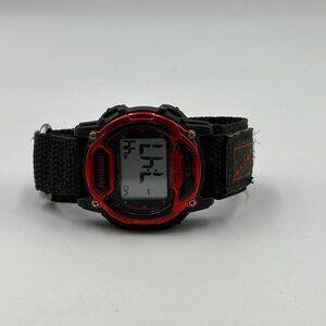 3/$30 Armitron Digital Watch Men Black Red Round Case Velrcro Strap Band