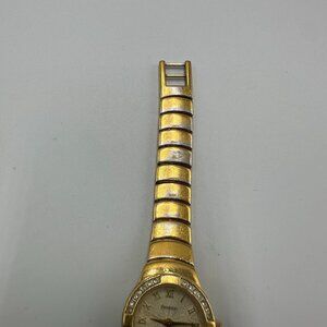 Armitron Watch Women Gold Tone Crystal Bezel Round 22MM Dial New Battery 6.25"