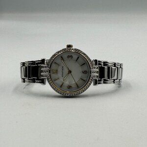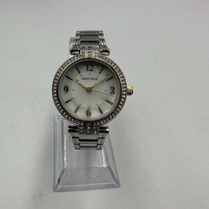 3/$30 Armitron Watch Women Silver Tone Bracelet Crystal Accents White Dial