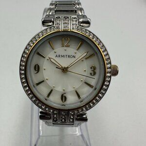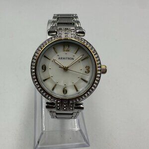 Armitron Watch Women Silver Tone Bracelet Crystal Accents White Dial New Battery