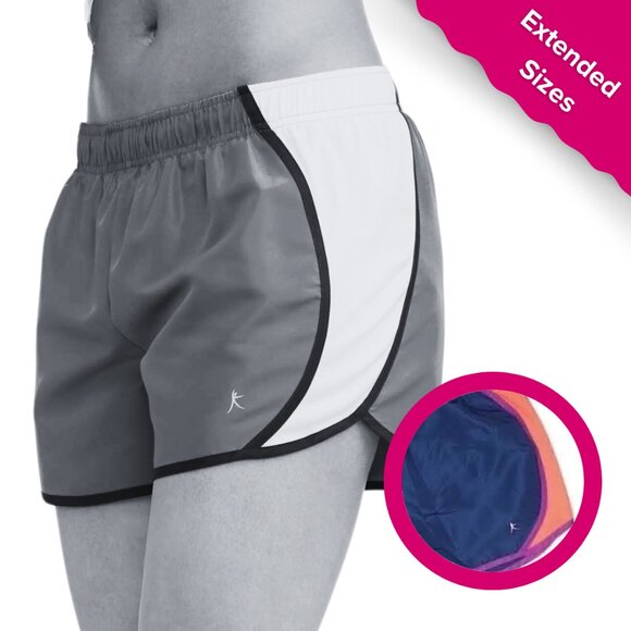 Features a built-in liner and a dolphin cut with contrasting trim for a retro look. Covered elastic waist and inner drawstring. Polyester.