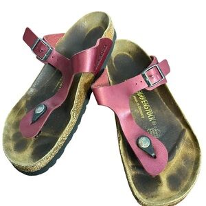 Birkenstock Gizeh Electric Metallic Magenta Slides Sandals in size 37, signs of wear on the sandal.