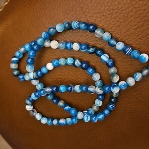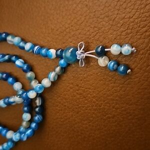 3/$30 Blue Agate Buddhist 108 Prayer Mala Stretchy Bracelet Necklace