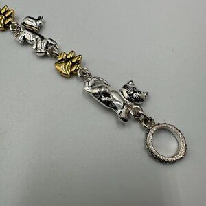 Cat Dog Charm Bracelet Silver Gold Tone Mixed Metals Paw Print Toggle Clasp