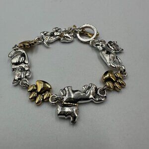 3/$30 Cat Dog Charm Bracelet Silver Gold Mixed Metals Paw Print Toggle Clasp