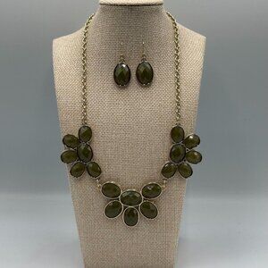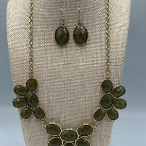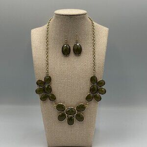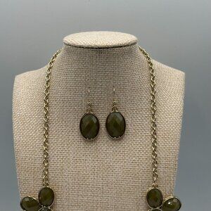 Charming Charlie Necklace Earring Set Green Faceted Floral Statement Jewelry