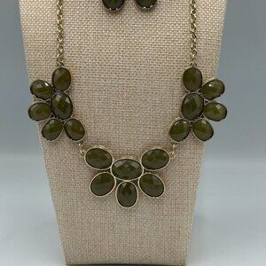 3/$30 Charming Charlie Necklace Earring Set Green Faceted Floral Statement