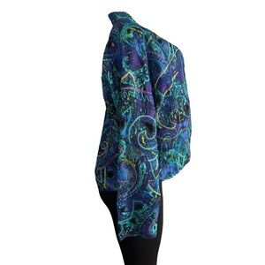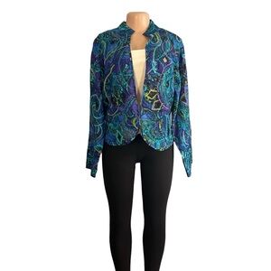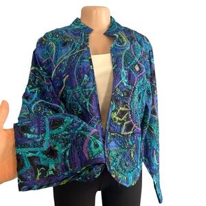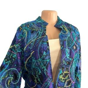 3/$30 🍂Chico's Silk Embroidered Embellished Open Front Cut Work Jacket Blue Aqua