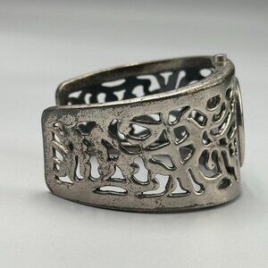 3/$30 Cuff Bracelet Watch Women Silver Tone Filigree Cutout Design Oval Case