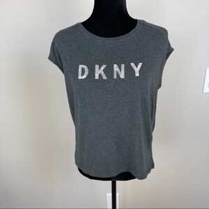 3/30$🔥 DKNY SPORT Women's Charcoal Grey w/Silver Glitter Logo Sleeveless TOP S