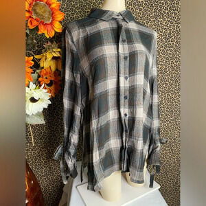 🌴3/$30🌴 DOE & RAE Hunter Green Button Down Long Sleeve Flannel with Wrist Tie