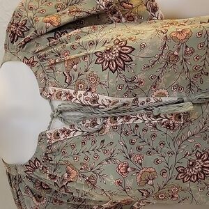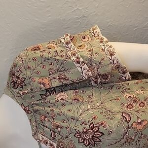 3/$30 DR2 Sage Floral Ruffle Short Sleeve Tie Neck Peasant Blouse