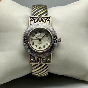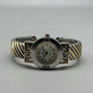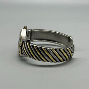 3/$30 Denacci Watch Women Silver Gold Two Tone Ribbed Hinged Cuff Band