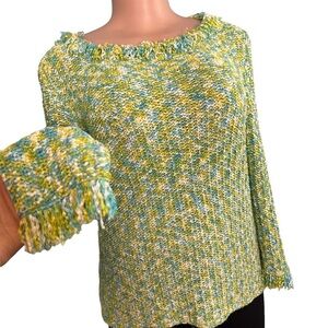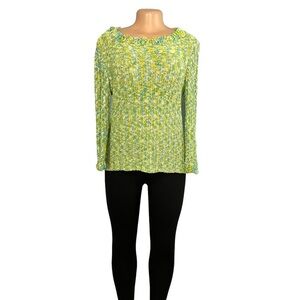 Easy Spirit Green and Blue Vintage Y2K Frill Sweater in size Medium.