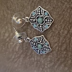 3/$30 Floral Enamel Silvertone Metal Post Dangle Earrings