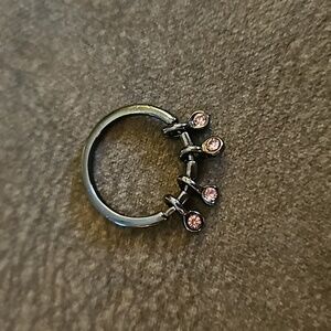 3/$30 Gunmetal Pink Crystal Charm Ring Size 7