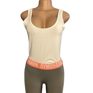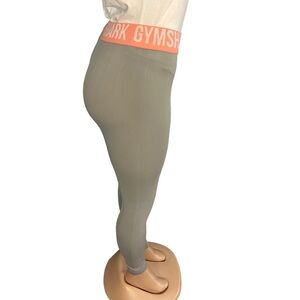 Gymshark Light Grey with Peach Pink Waistband Full Length Leggings in size Small