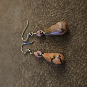 3/$30 HANDMADE Rhodonite Beaded Dangle Hook Earrings