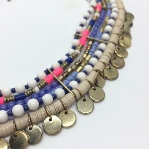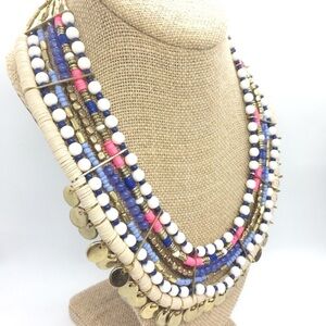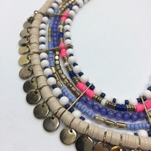 3/$30 HOT PINK BLUE SEQUIN BEAD COIN BIB STATEMENT BOHO TRIBAL NECKLACE COLORFUL