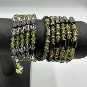 3/$30 Hematite Beaded Wrap Jewelry Magnetic Silver Tone Green Lightweight