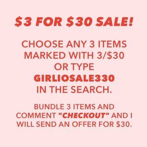 ****SALE ALERT! BUNDLE THIS ITEM WITH 2 MORE ITEMS MARKED 3/$30 IN MY CLOSET, COMMENT "CHECKOUT" AND I'LL SEND $30 OFFER! There are hundreds of participating items to choose from. To find these items, type GIRLIOSALE330 in the search bar on Poshmark.