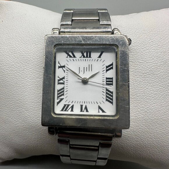 3/$30 J Jill Watch Women Silver Tone Roman Dial Rectangle Case Quartz 7.25"